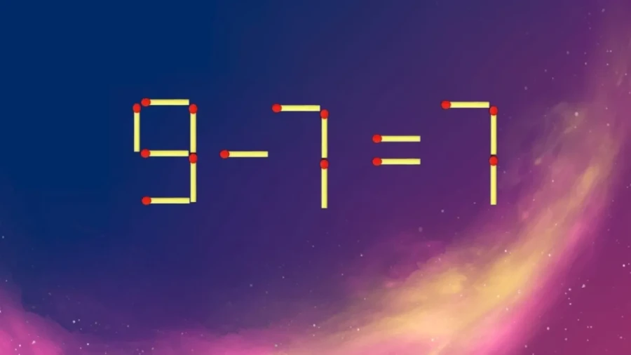 Спичками выложен пример «9-7=7». В нём есть ошибка. Вам нужно переложить всего одну спичку так, чтобы пример стал правильным.