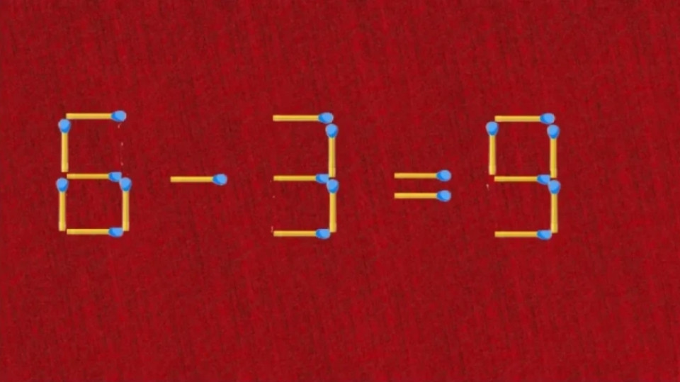 Представьте, на столе разложены спички в неравенство «6-3=9». Вы наверняка заметили, что в пример закралась ошибка. Ее вам нужно исправить в одно движение спичкой. На выполнение этой задачи у вас есть только 40 секунд.