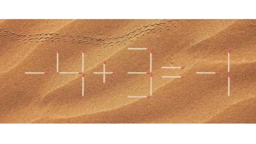 На картинке пример со спичками «-4-3=-7». Надо переложить всего одну спичку так, чтобы равенство осталось верным.