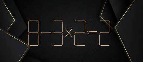 А теперь сверим ход наших действий. Забираем одну спичку из знака сложения и отправляем ее в конструкцию цифры 9 так, чтобы она перевоплотилась в цифру 8. Теперь у нас получилось верное равенство «8-3×2=2».