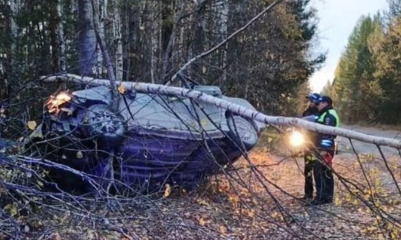 Машину отбросило на деревья, перевернуло и нанесло сильные повреждения. А все, кто находился в транспортном средстве скоропостижно погибли.