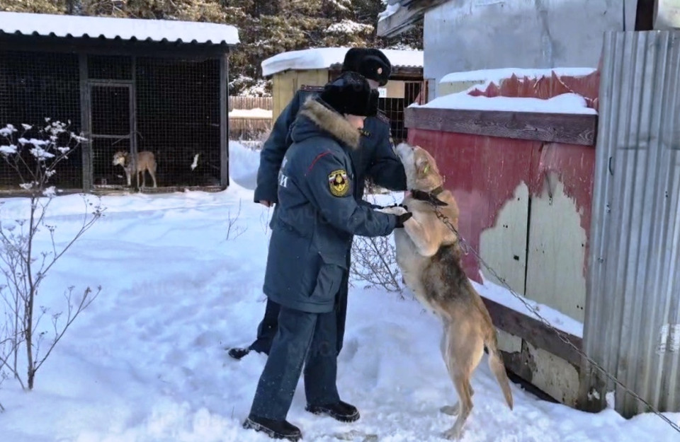 Свердловские сотрудники МЧС навестили приют для собак в новогодние каникулы