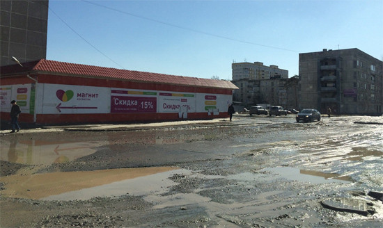 Диляра: «Честно я не знаю есть там ливневая канализация, или нет, но эта лужа-озеро-море-океан появляется и летом в дождливую погоду. Я,конечно, понимаю, что мы живем на Урале и у нас лето -это "малоснежная зима", но всё-таки минусовых температур летом нет, вода замерзнуть не может, а лужа-озеро есть».