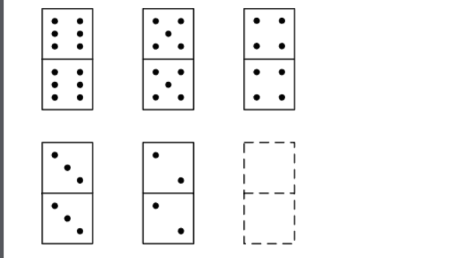 Все просто, нужно посмотреть на картинку и понять логику выстраивания костей. Тогда можно будет просчитать, какая фишка домино здесь пропущена.