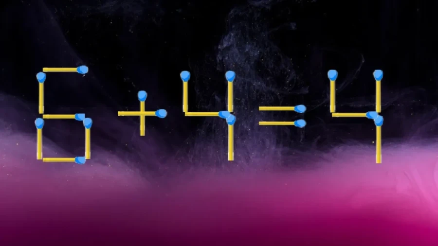 На картинке написано 6+4=4, но это неправильно. Нужно переложить всего одну спичку так, чтобы равенство стало верным.