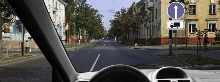 Тест ПДД: знак «Движение прямо» и табличка — как правильно проехать перекрёсток на небольшом грузовике