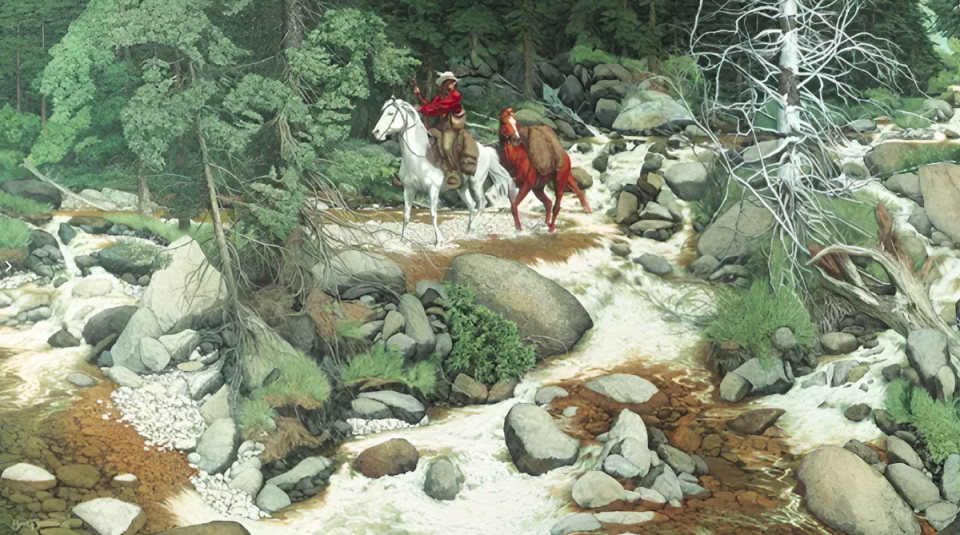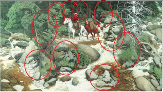 Красивый сказочный пейзаж, но только на первый взгляд. Попробуйте посмотреть на него повнимательнее. Тут везде лица великанов и волшебников. Они притаились и смотрят за нами, удастся ли нам найти их всех.
