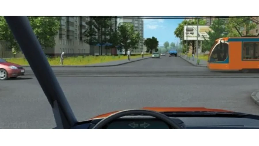 А вот трамвай справа — это ваша помеха справа, поэтому вы обязаны его пропустить. Трамвай всегда имеет преимущество перед автомобилями, даже если находится слева.