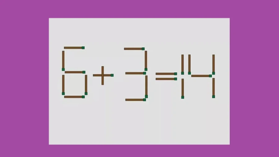 Нам предложили рассмотреть следующее равенство: «6+3=14». Сразу бросается в глаза то, что оно выполнено с ошибкой. Для ее устранения необходимо переместить одну спичку. Приступайте к поиску правильного варианта.