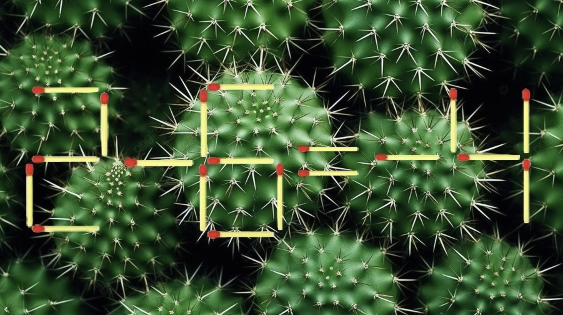 Взгляните на иллюстрацию, там показано равенство, выложенное из спичек. Вот только равенство неверное, а всё из-за того, что одна спичка лежит не на своей позиции. Переставьте её и исправьте пример.