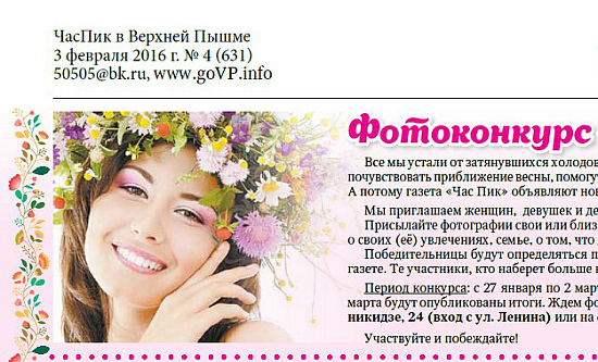 Участвуйте в фотоконкурсе «Мисс Весна» от газеты "Час Пик"