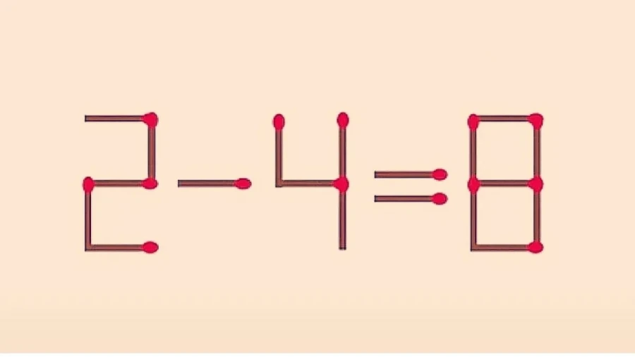 У нас есть пример: «2-4=8». В ней явная ошибка, которую нам предстоит исправить. Для этого требуется переместить одну спичку. Погнали.