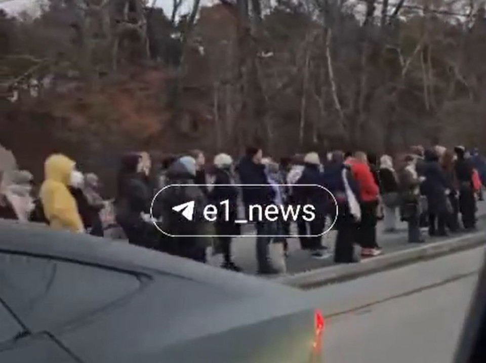 Как отмечает издание, на одной из остановок стоит около 200 человек. Люди не помещаются в автобусы и им приходится идти пешком.