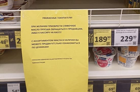 В начале недели издание «Продукт медиа» заметило, что масло перестали выкладывать на полки и в одном из магазинов «Диски» в Санкт-Петербурге.