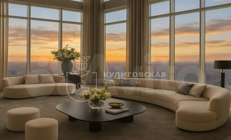 В квартире имеется «второй свет», поскольку она двухуровневая. Общая площадь составляет 456 квадратных метров. Кроме того есть возможность купить парковочное место в подземном паркинге башни.