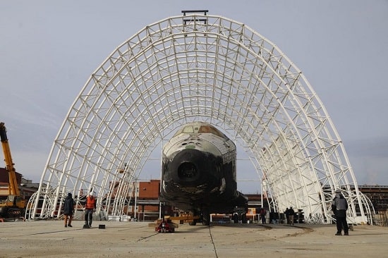Павильон будет защищать космический корабль от воздействия погоды. В нем также разместят экспозицию о грандиозной космической программе «Энергия-Буран» и уникальный советский ракетоплан.