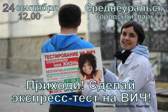Общество 21.09.2015, 07:2024 сентября у кинотеатра «Волна» в Среднеуральске будет осуществлять работу выездной мобильный пункт по обследованию на ВИЧ-инфекцию, организованный Управление культуры и молодежной политики совместно со Свердловским областным центром по профилактике и лечению ВИЧ-инфекции.