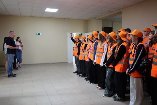 В ожидании построения уже имеющие трудовой опыт МБТ делились нюансами предстоящей деятельности. Те ребята, для кого это, в целом, первая трудовая смена, с волнением прислушивались к инструктажу и разглядывали свою «униформу». В этом году у ребят новенькие «брендированные» знаком Вектор спорта и МБТ оранжевые жилеты и бейсболки.