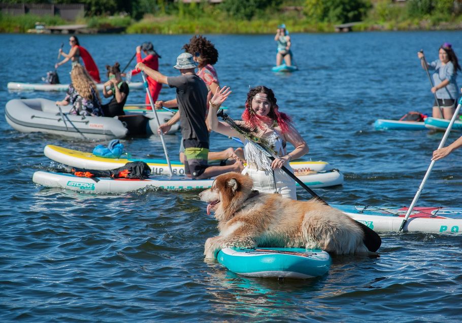 Фото: организаторы заплыва с собаками на сапах, портал «Моменты»