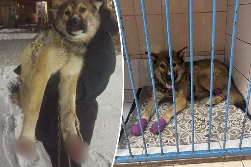 «Пёс с окровавленными лапами сидел на цепи и жалобно скулил от боли», — сообщили волонтёры.