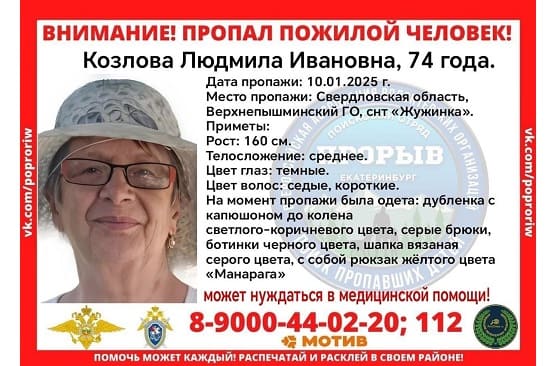 Всех, кто что-либо знает о местонахождении пропавшей пенсионерки, просят сообщить информацию по телефонам 8 (34368) 543-44, 112, 8-9000-44-02-20. Розыском пропавшей занимается МО МВД России «Верхнепышминский», а также волонтёры поисковых отрядов.