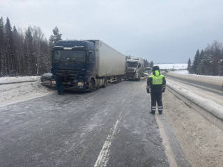 Столкнувшиеся грузовики и легковушка перекрыли федеральную трассу в направлении Екатеринбурга