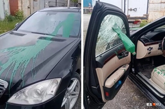 В минувшие выходные в Верхней Пышме неизвестные разбили стекло автомобиля Mercedes и облили его зеленой краской на улице Феофанова, 13.