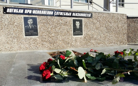 В завершении мероприятия в память о погибших при выполнении служебного долга сотрудниках отдела внутренних дел, собравшиеся возложили к мемориальной доске цветы и почтили их память минутой молчания.