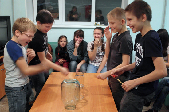 Уже традиционным стало проведение игровых развлекательных программ из цикла «Занимательный четверг» в клубе «Титаник». Местные мальчишки и девчонки с удовольствием принимают участие в этих мероприятиях, а еще приглашают на них друзей и знакомых. На этот раз, впрочем, как и всегда, название программы звучало очень интригующе: «Банкабум». Героем вечера стала обыкновенная стеклянная банка, в которой бабушки обычно солят огурцы и хранят варенье.Специалист клуба по работе с молодежью Людмила Марченко рассказала, что история стеклянной банки уходит корнями в глубокие тысячелетия. Школьники с удивлением узнали, что первые стеклянные сосуды древние египтяне использовали уже более 2,5 тысяч лет назад. Но патент на изготовление посуды и тары из стекла получен относительно недавно – в начале 19 века в Швейцарии. Ну, а теперь, как известно, стекло широко применяется в самых различных сферах.