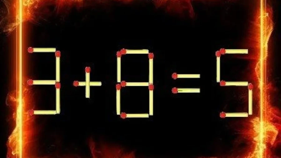 На картинке вы видите пример «3+8=5», где специально сделана ошибка. Ваша задача — передвинуть куда-то всего одну спичку так, чтобы это равенство стало правильным. Проверим, насколько вы сообразительны!