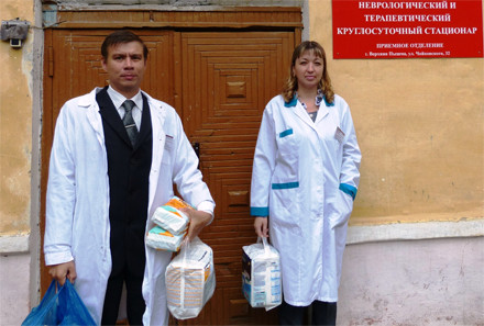 И вот 31 августа специалисты отделения участковой социальной службы Алексей Ожегов и Елена Садовникова вручили средства гигиены одиноким больным, которые находятся на стационарном лечении в неврологическом отделении центральной больницы. Нуждающихся оказалось не один и не два человека, а десять.