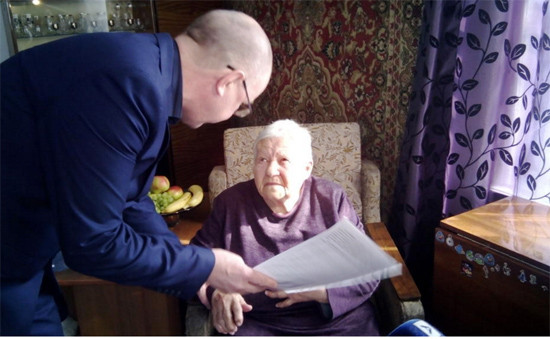 В Верхней Пышме вручили крупную сумму участнику Отечественной войны Федоре Ефимовне Полещук. Женщина получила сертификат на полтора миллиона рублей на улучшение жилищных условий.