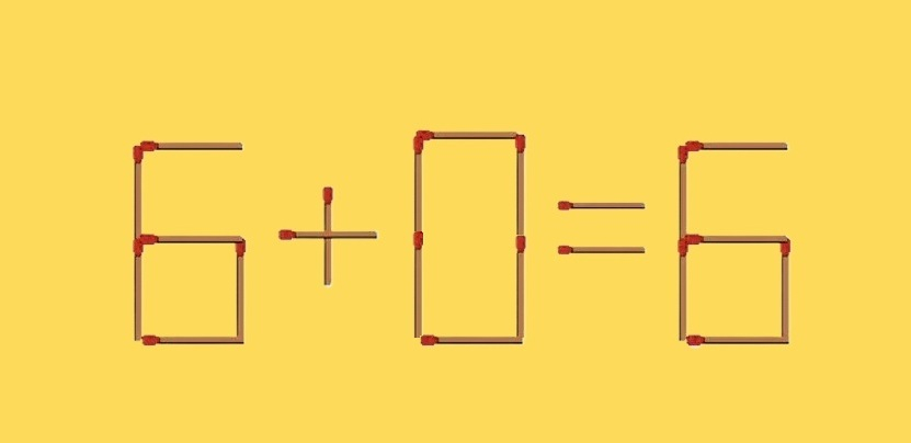 А вот и ответ подоспел. Нам необходимо изъять спичку из цифры 9 и переставить ее так, чтобы цифра трансформировалась в 0. Теперь пример имеет корректную запись: «6+0=6».