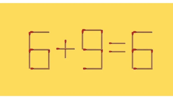 У нас есть пример: «6+9=6». Эта запись словно удар по всей математике. Чтобы исправить ошибку необходимо передвинуть одну спичку. Приступайте к решению.