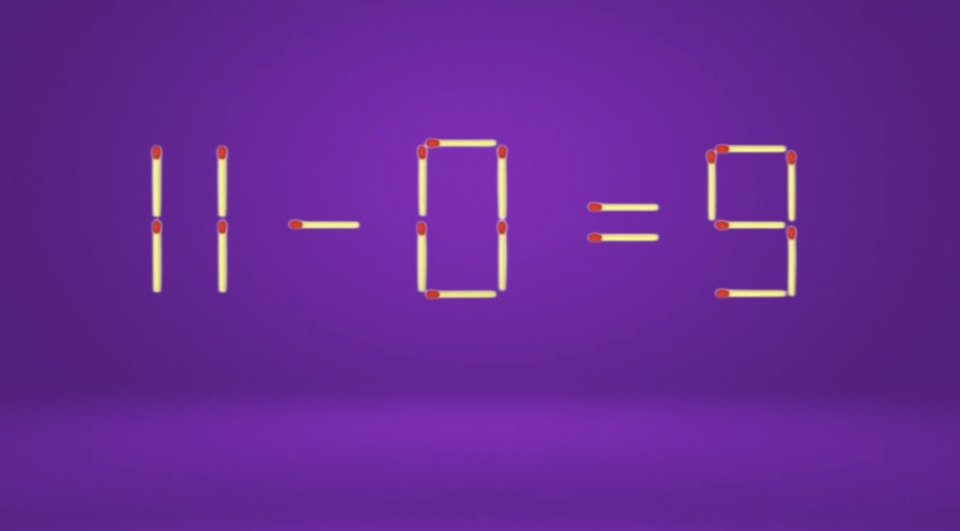 Давайте проверим вашу смекалку на праздничном примере со спичками. Перед вами неверное равенство «11-0=9». Задача проста: нужно переставить всего одну палочку, чтобы пример стал правильным. Попробуйте посмотреть на цифры под другим углом.