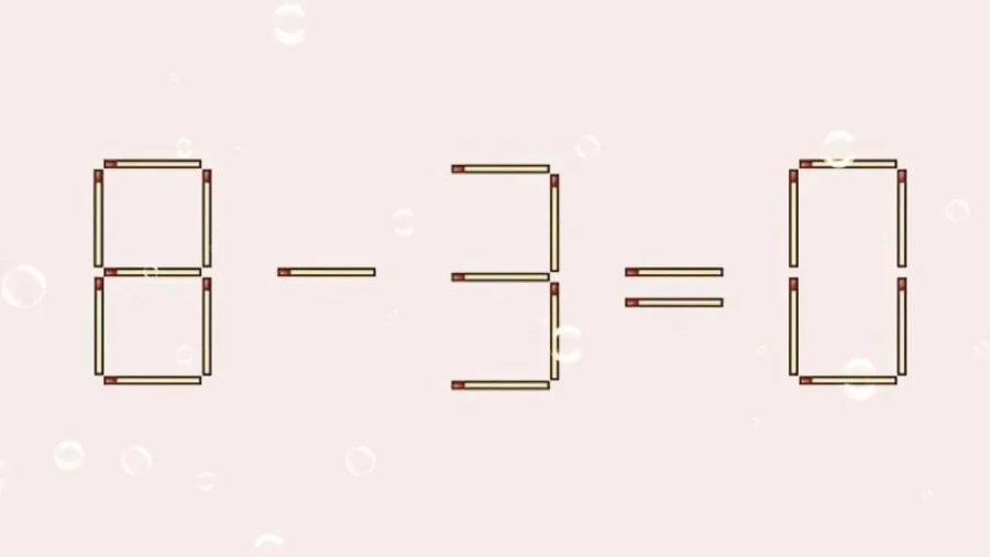 Нам предлагают разобраться с примером «8-3=0». Да, в ней ошибка. Чтобы исправить ее от нас требуется переставить лишь одну спичку. Подумайте и сделайте свой ход.