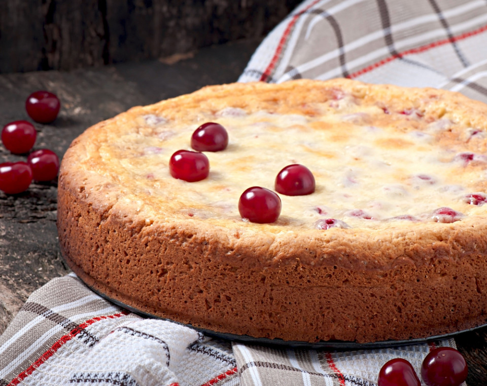 Ингредиенты: 2 яйца, 1/3 ч. л. соли, стакан сахара, стакан манной крупы, стакан кефира, стакан муки, стакан ягод, ½ стакана растительного масла (100 мл) и 1 ч. л. разрыхлителя.