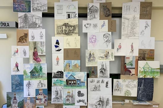 Учащиеся Детской художественной школы провожали лето этюдами и зарисовками зданий нашего горда продолжая изучать воздушную и линейную перспективу, роль тональной и цветовой среды в изображении природы, особенности изображения архитектурных сооружений, связи их с окружающей средой. Портрет и наброски человеческой фигуры разбавили работу над архитектурными зарисовкам.