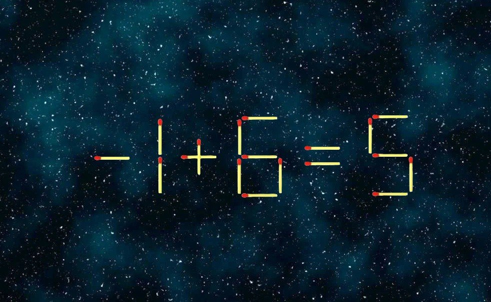 Мы взяли спичку из последнего числа и сделали первое число отрицательным. Получилось «-1 + 6 = 5». Проверьте, всё верно.