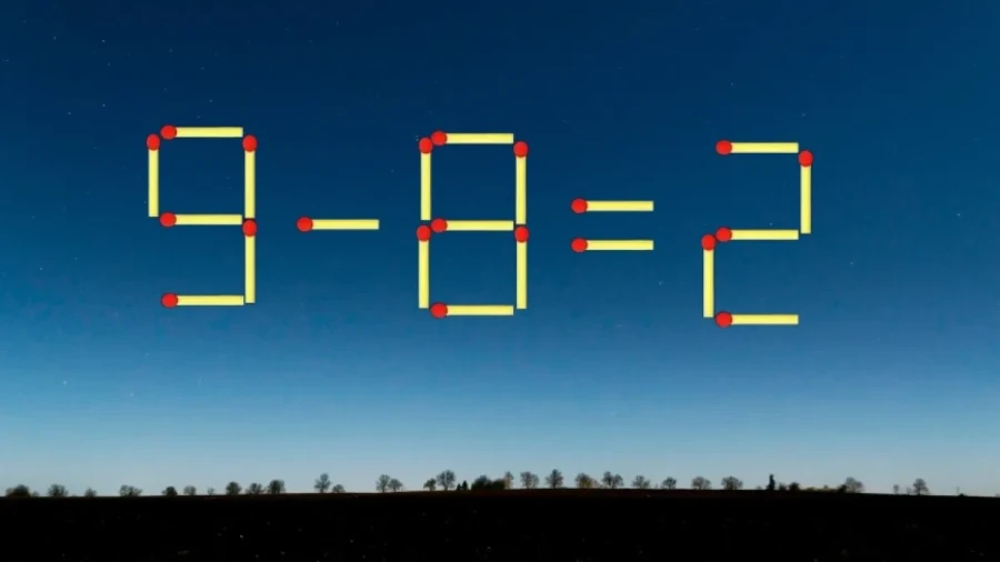 Возьмите спичку из «восьмёрки» и переставьте её. «Девятка» станет «восьмёркой», а «восьмёрка» — «шестёркой». Получится «8-6=2».