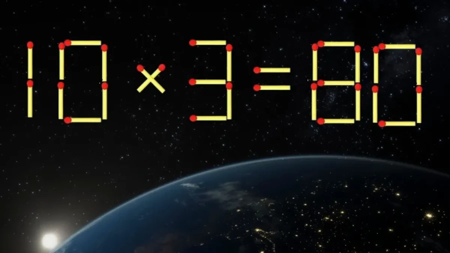 Предлагаем вам задачку со спичками. На картинке написано «10×3=80», но это неправильно. Нужно передвинуть всего одну спичку так, чтобы получилось верное равенство.